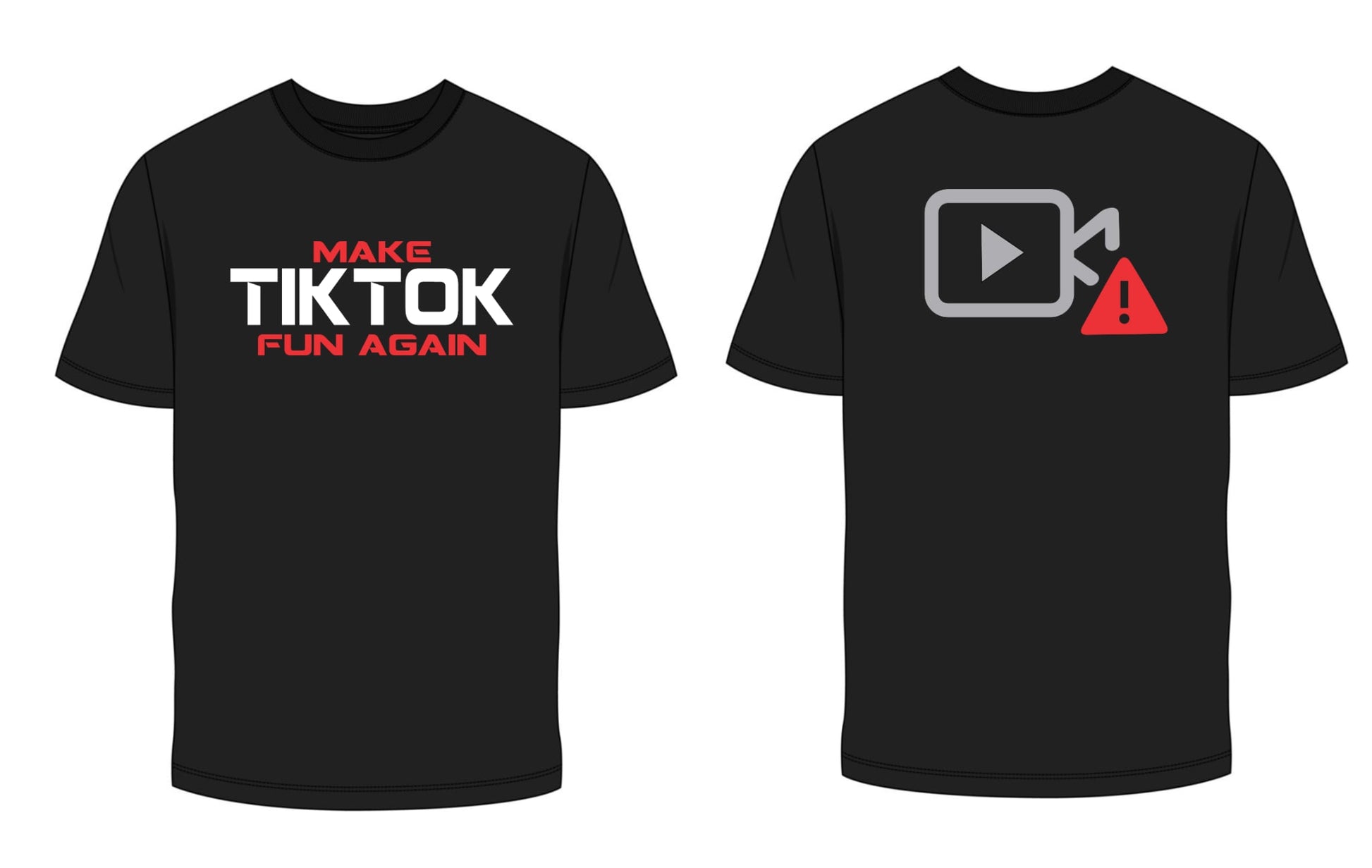 This bold black tee says MAKE TIKTOK FUN AGAIN loud and clear on the front, while the back gives a cheeky nod to every creator’s favorite nightmare: the video warning icon. If you know, you know.